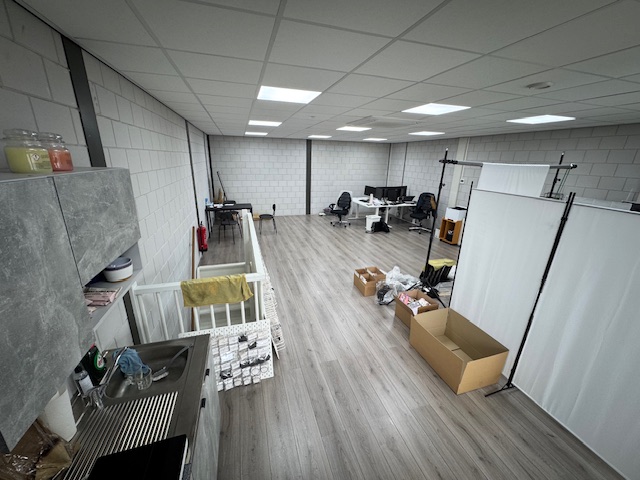 Voorzieningen | toilet, laminaatvloer, systeemplafond met ledverlichting, koel-/verwarmingsinstallatie t.b.v. kantoor/showroom/magazijn |